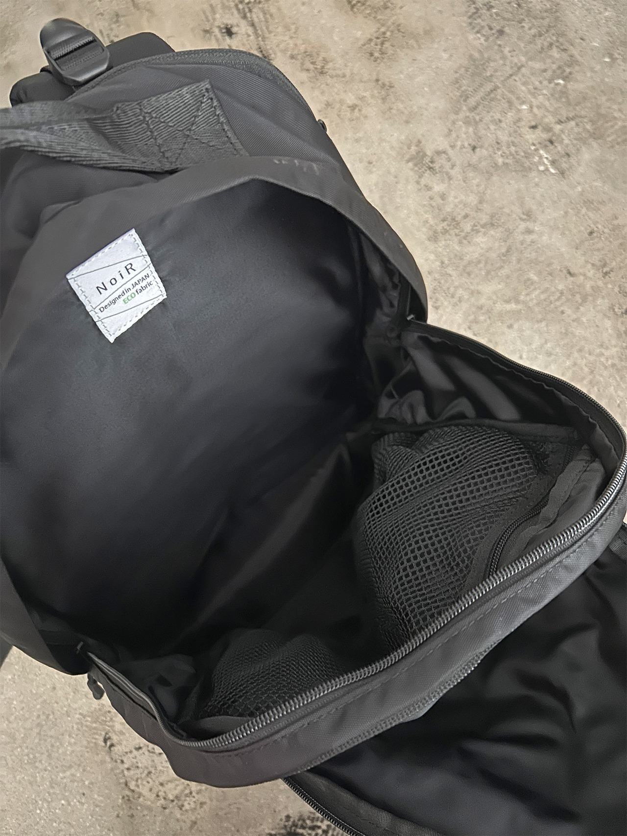 使用しているサスティナブルナイロン素材は軽量で撥水性もあり、