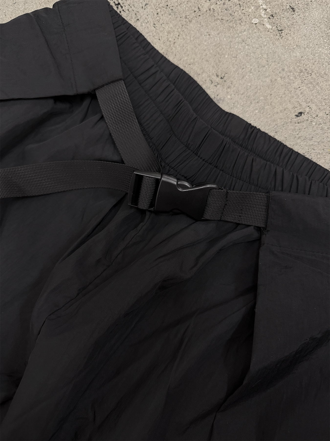 ウエストはゴム仕様に加え、バックル付きベルトで